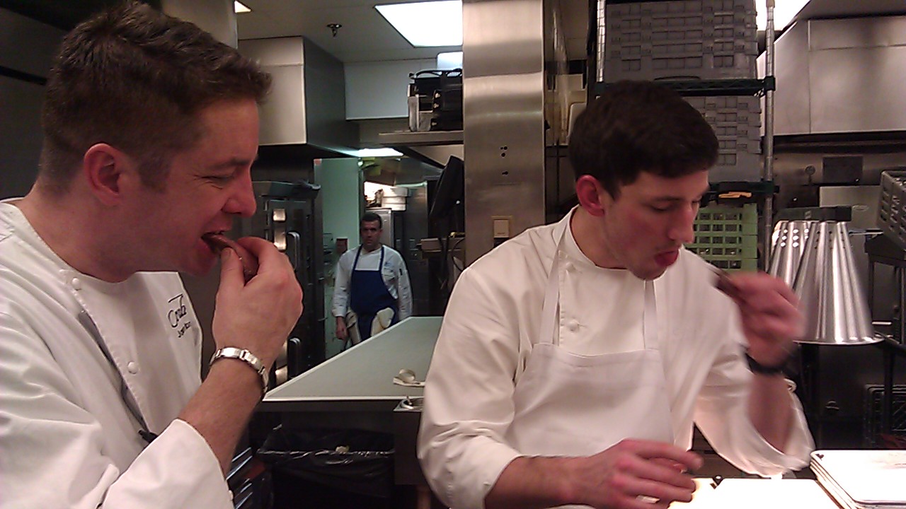 | Jason Wilson from Crush and Blaine Wetzell from Willow's Inn nibbling on a bite... |